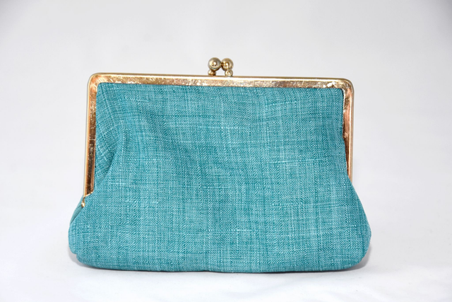 Porte monnaie Vintage Bleu, velours et effet lin